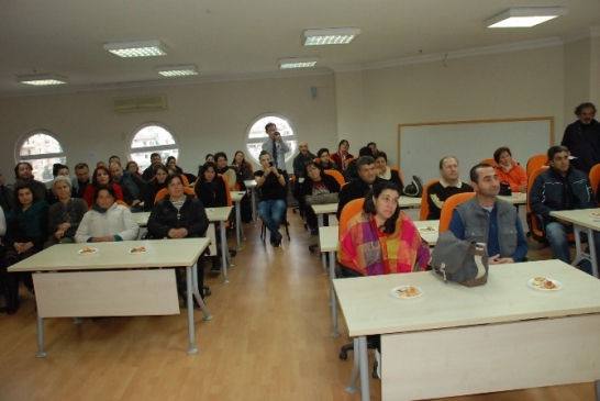 Didim Belediye Meclisinin geçtiğimiz günlerde oy çokluğuyla Didim Cemevini ibadethane olarak kabul etmesiyle ilgili karar almasının etkileri sürüyor. Didim Belediyesinin örnek bir karar almasından dolayı İzmir’in Güzelbahçe İlçesi Yaka Mahallesinden 30 kişilik bir grup Didim Belediye Başkanı A. Deniz Atabay’ı ziyaret etti. Grubu CHP Didim İlçe Başkanı Gökmen Karataş, İlçe yöneticileri ile CHP Didim İlçe Kadın Kolları üyeleri karşılarken, Başkan Atabay konuklarının Meclis salonundan ağırladı.