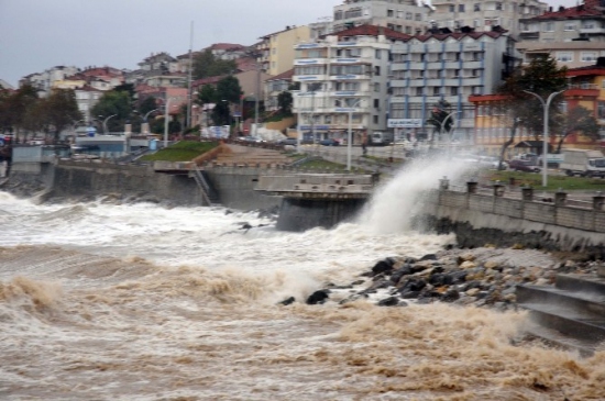Akçakoca’da sağanak yağış ve fırtına yaşamı olumsuz yönde etkiliyor. Fırtına nedeniyle balıkçılar balıkçı barınağına sığınırken boyu 5 metreyi bulan dev dalgalar balıkçı barınağını aştı. Sahilleri dev dalgalar dövdü. Dalgalar nedeniyle çivi deresi şişti ve yükselme oluştu.