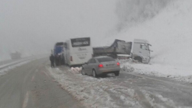 Samsun’da yolcu otobüsünün karda kayarak makaslama yapan TIR’ın dorsesine çarpması sonucu meydana gelen trafik kazasında 20 kişi yaralandı.