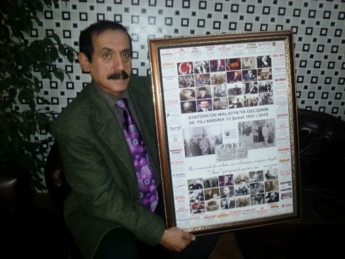 Malatyalı Şair Hasan Aykanat, Atatürk’ün Malatya’ya gelişinin 84. Yıl dönümü dolayısıyla özel fotoğraflardan oluşan poster yaptırdı.