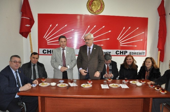 Edremit Belediye Başkanı Kamil Saka, Belediye Başkan Yardımcıları Fatma Özgirgin, Mehmet Ertaş ve Belediye Meclis Üyeleri ile birlikte CHP Edremit İlçe Başkanlığı’nı ziyaret ederek göreve yeni atanan İlçe Başkanı Enver Enligün’e hayırlı olsun dileğinde bulundu. Başkan Saka, yaklaşan yerel seçimlerle ilgili değerlendirmelerin yapıldığı ziyarette, "Yönetim kurulu üyelerinize ve tüm partililerimize şimdiden kolaylıklar diliyorum. 7 Haziran seçimlerinde ilçe örgütünden, belediye başkanı, meclis üyesi, kadın ve gençlik kollarından tüm üyelerimize kadar hepimiz, kimin milletvekili olacağına değil, CHP’den bir fazla milletvekili nasıl çıkarabiliriz bunun için mücadele etmeliyiz" dedi. Ziyaret nedeniyle teşekkür eden CHP Edremit İlçe Başkanı Enver Enligün’de 7 Haziran 2015 tarihinde yapılacak olan seçimler öncesinde örgüt olarak birlik ve beraberlik içerisinde çalışmalara azimle devam ettiklerini belirterek “Edremit’te yerel seçimlerde yakaladığımız başarıyı genel seçimlerde daha da yukarılara taşımak için çalışacağız” dedi.