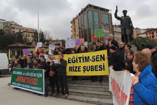 Birleşik Haziran Hareketi Rize İl Meclisi Cumhuriyet Meydanı’nda bulunan Atatürk Anıtı önünde, eğitim sistemindeki değişiklikleri protesto eden ve laik eğitim sistemi talep eden bir basın açıklaması düzenledi. Rize ve ilçelerinden katılımlarla gerçekleştirilen açıklamada, Birleşik Haziran Hareketi Rize İl Meclisi adına hazırlanan metni, Birleşik Haziran Hareketi Sözcüsü Bilgehan Kadıhan okudu. Okunan metinde, “Okulda, işyerinde, mahallede eğitim sistemimiz bilimsellikten ve laiklikten uzaklaştırılıyor. Bizler, çocukların gözlerindeki kararlılığı, inadı ve umudu sürekli kılabilmek için bilimsel ve laik eğitim için ayaktayız ve boykottayız” ifadelerine yer verildi. Metnin okunduğu sırada grup dışından bazı kişiler gruba müdahale etti. Müdahale iki taraf arasında sözlü sataşmaya dönüşünce, olaya polis müdahale etti. Polis karşıt görüşlerin bir araya gelmesini engelleyerek, etkinliğin olaysız bir şekilde tamamlanmasını sağladı.