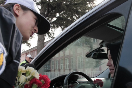 Bolu Emniyet Müdürlüğü Trafik Tescil ve Denetleme Şube Müdürlüğünde görevli polisler, Hürriyet Caddesinde durdurdukları sürücülere 14 Şubat Sevgililer Günü nedeniyle karanfil ve araç kokusu verdi. Polisler ayrıca, emniyet kemeri takılı olmayan sürücüleri uyardı. Bolu İl Emniyet Müdürlüğü Trafik Tescil ve Denetleme Şube Müdürü Hakkı Kaynak, polis olarak amaçlarının, halkın can ve mal güvenliğini sağlamak olduğunu belirterek, "Bunun için güvenli bir seyahat ortamı oluşturmak için, kimi zaman yapmış olduğumuz eğitimlerle, kimi zaman denetim ve cezalarla sağlamaya çalışıyoruz. Ama bugün Sevgililer Günü dolayısı ile farklı bir tutum izledik. İl Emniyet Müdürümüzün de oluru ile sevgimizin ifadesi olarak sürücülere karanfil takdim ettik" diye konuştu.