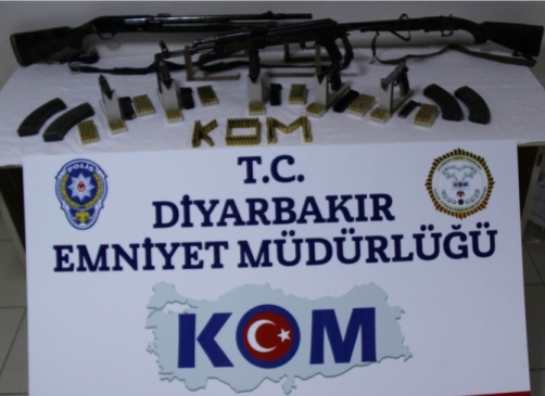 Diyarbakır Emniyet Müdürlüğü’nden yapılan açıklamada, Diyarbakır Cumhuriyet Başsavcılığı koordinesinde 3 ayrı çalışma yapıldığı, bahse konu şüpheli şahıslara yönelik Diyarbakır ve Mardin’de 15 adrese eş zamanlı olarak operasyon düzenlendiği ifade edildi. Açıklamada, yapılan çalışma kapsamında, 1 kalaşnikof marka tüfek, 5 tabanca, 11 şarjör, 118 uzun namlulu silah fişeği, 662 tabanca fişeği, 2 av tüfeği ele geçirildi.