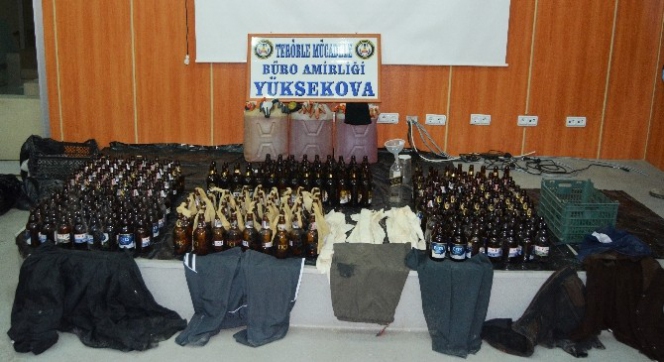 Hakkari İl Emniyet Müdürlüğü ekipleri tarafından Yüksekova ilçesinde yapılan çalışmalar neticesinde kullanıma hazır çok sayıda molotof kokteyli ile bez ve fitil parçaları ele geçirildi.