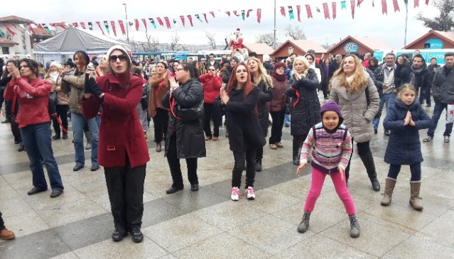 14 Şubat Sevgililer Günü, tüm dünyada eş zamanlı olarak gerçekleştirilen etkinlik çerçevesinde Barbaros meydanı ve Kadıköy İskele meydanında bir araya gelen kadın, erkek ve çocuklar, dans ederek kadına yönelik şiddeti protesto etti.