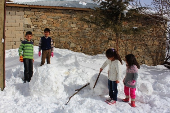 Hakkari’de dün akşam saatlerinde etkili olan kar yağışı; araç ve yaya trafiğini olumsuz etkilerken, en çok çocukları sevindirdi. Hafta sonu tatilini kayarak ve kardan adam yaparak değerlendiren minikler, yağan karın tadını doyasıya çıkardı. Üst üste topladıkları kar yığınlarından farklı figürler oluşturmaya çalışan çocukların, aileleri ve büyükleri için adeta kâbus niteliğinde olan karlı havada gönüllerince eğlenerek hafta sonu tatilini değerlendirmeye çalıştıkları belirtildi. Dün akşam saatlerinde etkili olan ve sabah saatleri itibariyle etkisini yitiren kar yağışı yerini güneşli havaya bırakırken, kent merkezinde soğuk havalar ise etkisi sürdürüyor.