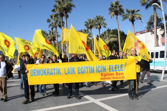 Atatürk Meydanı’nda düzenlenen eyleme Birleşik Haziran Hareketi, Pir Sultan Abdal Kültür Derneği, Eğitim-Sen, KESK, Cumhuriyet Halk Partisi (CHP) ile Halkların Demokratik Partisi (HDP) ilçe teşkilatı katıldı. Eğitim-Sen Marmaris Şube Başkanı Altan Kumbasar yaptığı basın açıklamasında, 2002 yılından bu yana eğitimde yaşanan değişikliklerin kaygı verici boyuta ulaştığını belirtti. Özellikle 2010’dan sonra eğitim alanının gericileştirme kıskacı altına alındığını ileri süren Kumbasar sözlerini şöyle sürdürdü: