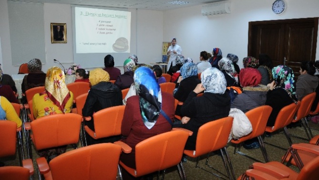 Pursaklar Belediyesi Nezaket Hanımevi’nde düzenlenen sağlık seminerinde, okul öncesi yaşlardaki çocukların beslenmeleri konusunda anneler bilgilendirildi. Pursaklar Belediyesi Diyetisyeni Sibel Ünver Sarıkaya, çocukların sağlıklı beslenmesinden düzenli kilo almasına kadar birçok konuda önemli bilgiler verdi. Beslenmede süt, yoğurt ve peynirin önemli olduğunu belirten Sarıkaya, temel enerji kaynağı olan ekmeğin daha az tüketilerek sebze ve meyvelerin tercih edilmesi gerektiğini söyledi. Sebze ve meyvelerin çocukların büyüme döneminde önemli olduğunu belirten Sarıkaya, kemik ve dişlerin gelişimi için ise süt, yoğurt ve peynirin önemli olduğunu kaydetti.
