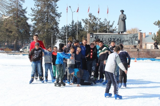 Kentte yapılan tüm törenlerin başladığı nokta olan 9. Kolordu Komutanlığı karargah binasının karşısındaki Atatürk heykelinin bulunduğu havuzda gece ısının sıfırın altında 18 dereceye kadar düşmesini fırsat bilen buz pateni antrenörü Eren İlter, kasım ayı başında suyu boşaltılan havuzu ıslatıyor. Her tarafı özenle sulayan Eren İlter, sabahın erken saatlerinden itibaren de oluşan buzun üzerinde kaymaya başlıyor. Yoğun trafiğin yaşandığı saatlerde havuzun içinde buz pateni yapıldığını görenler, antrenör İlter ve öğrencilerine destek veriyor.