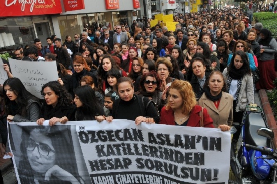 Yürüyüşte ‘Kadınlar sokağa hesap sormaya’, ‘Kadınlar sokağa dayanışmaya’, kadın şiddetine son’, ‘uyuyor musun kadın katliamı var’, ‘Hepimiz Özgecan’ız’ ve ‘Kadın yaşam özgürlük’ sloganı attılar.