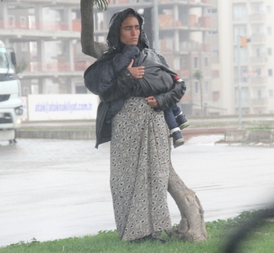 Adana’da, Suriye’deki savaştan kaçan vatandaşların da gelmesiyle trafik ışıklarında dilenen çocuk ve kadın sayısı bir hayli arttı. Ancak en çok dikkat çeken ise çocuklarını kucağına alıp kendisini acındırarak dilenen kadınlar oluyor. Bu kadınlar çocuklarını yağmurlu havalarda bile yanlarına alıp hasta olma pahasına istismar ederek dilenmeye devam ediyor. Para kazanma uğruna çocuklarını istismar eden kadınlara acıyan sürücüler ise para veriyor. Kadınlar çocuklarıyla birlikte yağmurda sırılsıklam olurken, refüjdeki ağaç altlarına girip yağmurdan korunmaya çalışıyor. Ancak kırmızı ışık yandığında yağmura rağmen kadınlar yine dilenmeye devam ediyor.