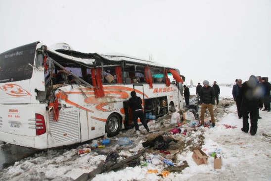 Edinilen bilgilere göre kaza, sabah saatlerinde Afyonkarahisar-Konya karayolunun 22. kilometresinde Değirmendere Kavşağı yakınlarında meydana geldi. Afyonkarahisar’dan Konya’ya giden Nihat G. (36) yönetimindeki 42 UN 555 plakalı yolcu otobüsü, saat 05.00 sularında kar yağışından dolayı kayganlaşan zeminde yoldan çıkarak orta refüje girip devrildi. Kazanın ardından can pazarı yaşanırken, içerisinde 30 yolcu bulunan ve hepsi yaralanan yolcular otobüsteki emniyet çekici ile camları kırarak dışarıya çıktılar. Kaza sonrası bölgeye çok sayıda 112 Acil Servis ve İl Afet ve Acil Durum Müdürlüğü’ne bağlı Sivil Savunma ekibi sevk edildi. Kazada otobüs içerisinde sıkışan 5 kişi, AFAD ekiplerinin yaklaşık yarım saat süren çalışmaları sonucu sıkıştıkları yerden çıkarılabildi. Kazada yaralanan 2’si ağır 30 kişi, Afyonkarahisar Devlet Hastanesi ve çeşitli hastanelere kaldırılarak tedavi altına alındı.