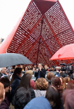 Özgecan Aslan’ın Mersin’de vahşice katledilmesi ve kadına yönelik şiddetin durdurulması için Muratpaşa Belediyesi tarafından Alyazma Anıtı’nda tören düzenledi. Töre ve namus cinayetlerinde katledilen, şiddete maruz kalan kadınlara adanan ve katledilen 467 kadının isminin yazılı olduğu “Al Yazma” Anıtında Muratpaşa Belediye Başkanı Ümit Uysal ve çok sayıda katılımcı yağmura rağmen Alyazma Anıtı’nda Özgecan’ın vahşice katledilmesi kınayıp, kadına yönelik şiddetin durması çağrısında bulundu