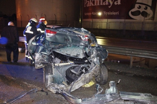 Kocaeli’nin Kartepe ilçesi D-100 karayolu yol yapım çalışma alanında otomobilin önündeki TIR’a arkadan çapan otomobil karşı yöne geçerek bir başka TIR’la çarpıştı. Kazada otomobil kullanılamaz hale gelirken sürücüsü ise yaralandı.