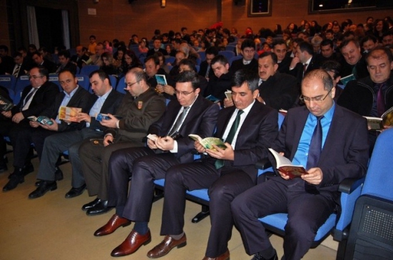 Yapılan konuşmaların ardından salonda temsili olarak 10 dakikalık kitap okuma etkinliği yapıldı.