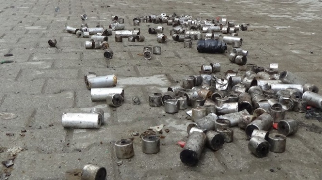 Hakkari’de akşam saatlerinde yaşanan gerginliğe müdahale eden polislerin kullandığı gaz bombası kapsüllerini toplayan mahalle sakinleri, duruma tepki gösterdiler.