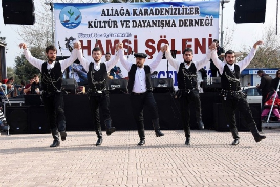 Aliağa ilçesinde, Karadenizliler Kültür ve Dayanışma Derneği’nin bu yıl ilk kez düzenlediği ‘Hamsi Şöleni’nde binlerce Karadenizli bir araya geldi. Aliağa Cumhuriyet Meydanını dolduran Karadenizliler, yöresel müzikleri ile horon teperek gönüllerince eğlendi. Karadeniz ezgilerinin hakim olduğu meydanda, 2 ton hamsi de tavalarda kızartılarak vatandaşlara ikram edildi. Meydanda Karadeniz peyniri, mısır unu, çay gibi Karadeniz sofrasına özgü ürünlerin bulunduğu stantlara da vatandaşlar büyük ilgi gösterdi.
