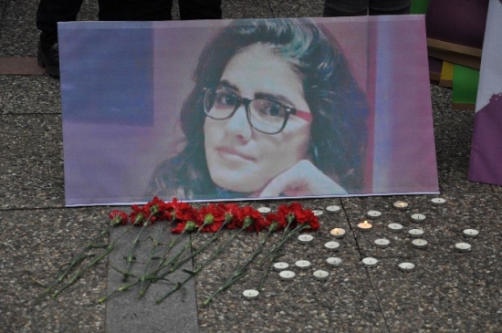 Konuşmanın ardından kalabalık grup, Milli Kuvvetler Caddesi’nden yürümek isteyince emniyet kuvvetleri izin vermeyerek, sadece belirtilen güzergahtan yürünmesini istedi. Yaptıkları pazarlıktan sonuç alamayan platform üyeleri, Ali Hikmet Paşa Meydanı’na Türkçe ve Kürtçe sloganlar atarak yürüdü. Meydanda da slogan atmaya devam eden grup, Özgecan’ın fotoğrafı önünde mum yakarak karanfil bıraktı.