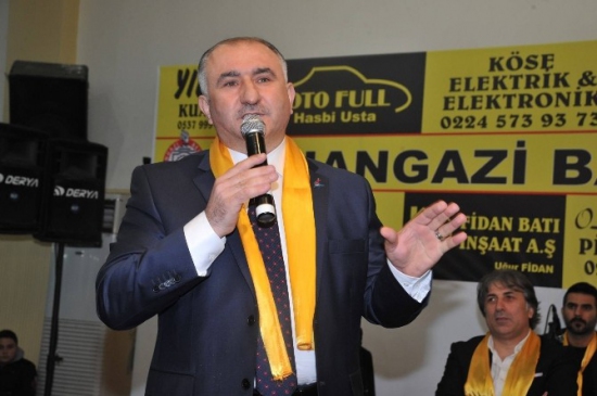 Çağlayan, "Milli ve manevi değerlerine bağlı, vatanını milletini seven bir halkız diye sürdürdüğü konuşmasında, dolayısıyla o güzel hasletlerimizi buraya taşımak. Burada Osmanlı’nın torunlarıyla, bu payitahtahtaki torunlarla, evladı fatihanın emanetleri ile beraber bir kardeşlik havasında, bir birlik ve bütünlük içinde inşallah buralara, bu coğrafyaya, Orhangazi’nin güzel insanlarına hizmet vermeye çalışıyoruz. Allah birliğimizi ve beraberliğimizi bozmasın. Allah bu güzel havayı, bu kardeşlik ruhunu daha da yüksek seviyelere taşıyacak, hal ve hareketleri, tavır ve davranışları bizlere ziyadesiyle nasip etsin” diye konuştu.