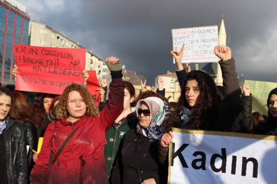 Cacabey Meydanında toplanan 300’e yakın kadın ve öğrenci, Mersin’de yaşanan olay sonucu hayatını kaybeden Özgecan Aslan’ı anmak için toplandı. Siyasi parti temsilcileri ve milletvekili aday adayları da gençlerin eylemine destek verirken, Özgecan Aslan için yapılan saygı duruşundan sonra Kürtçe ve Türkçe sloganlar atıldı. Atılan sloganlar gençler arasında tartışma yaşanmasına neden oldu. Bir grup hükümet aleyhine slogan atarak Özgecan Aslan’ın ölümünün sorumlusunu hükümet olarak gösterirken, diğer grup ’biz buraya siyaset için gelmedik’ diye karşılık verdi. Yapılan basın açıklamasının ardından gruplar oturma eylemi yaptıktan sonra polis kontrolünde dağıldı.