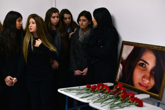 Çağ Üniversitesi Psikoloji Bölümü’nde okuyan Özgecan Aslan’ın (20) sırasına önce, fotoğrafı daha sonra arkadaşları tarafından karanfiller konuldu.