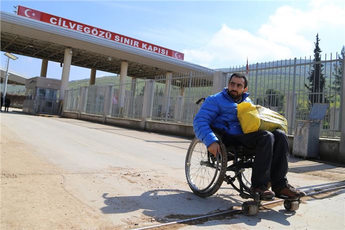 Tekerlekli sandalyeyle sınırı geçti