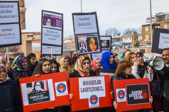 Mersin’in Tarsus ilçesinde hunharca katledilen Özgecan Aslan için Ahlat Emniyet Müdürlüğü önünde bir araya gelen çok sayıda kadın ve erkek, buradan kaymakamlık binasına kadar yürüdü. Yürüyüş esnasında “Tecavüz ve cinayete sessiz kalma, kadına şiddete hayır ve idam geri gelsin” sloganları sık sık atıldı. Yürüyüş sonunda basın açıklaması yapan AHKAD Başkanı Semra Çeker, bugün burada tarifi imkansız, vicdanların rahatsız olduğu, insanlık onurunun incitildiği Özgecan Aslan’ın acısını yüreklerde taşıdıkları için toplandıklarını belirtti. Çeker, “Mersin’de vahşice öldürülen üniversite öğrencisi Özgecan Aslan’ın acısını hepimiz kalbimizde hissediyor ve bu acıyı günlerdir birlikte yaşıyoruz. Özgecan hunharca katledildi. Tek suçu kadın olmak, insanca yaşamak ve okuluna gitmekti. Hiçbir kitaba uymayan, hunharca katledilen, hayatının baharında sevdiklerinden, ailesinden, kısacası geleceğinden kopartılan Özgecan Aslan için içimiz yanıyor, ciğerimiz sızlıyor. Sayın Diyanet İşleri Başkanı Prof. Dr. Mehmet Görmez’in twetter hesabından Özgecan Aslan cinayetiyle ilgili yapmış olduğu açıklamasında ‘Masum ve pak kardeşimiz Özgecan’ın zalim ve gaddar bir kültür tarafından acımasızca yok edilmesi karşısında sadece biz kardeşlerinin değil, melekler âleminin de bu acıya ağladığını düşünüyorum’ sözlerine aynen katılıyoruz. Sevgili Özgecan senin için sadece biz Ahlatlı kardeşlerin ve tüm insanlık değil, melekler âleminin de bu acıya ağladığını düşünüyoruz. Biz Ahlatlı bayanlarda bu zalim, bu gaddar ve tarifi imkansız insanlık suçunu nefretle kınıyor, bu cinayeti vicdan sahibi, evlat sahibi, aile sahibi olan bir anne olarak kabullenemiyoruz. Allah hiçbir anneye böyle bir acı nasip etmesin. İnsan olma onurumuzun, vicdanımızın yerlere serildiği bu olay, kızı olan her anneyi ve babayı, insan olan herkesi büyük bir korku girdabına sürüklemiştir. Bu acıya tahammül edilemez. Bu acının tarifi yok. Özgecan’ın annesi ile birlikte bütün annelerin yüreğine bu acının düştüğünü biliyoruz. Bütün milletimizin yüreğine de bu acının düştüğünü biliyoruz. Masum ve pak kardeşimiz Özgecan’a tekrar Allah’tan rahmet diliyor ve hepinizi Özgecan için dua etmeye davet ediyorum. Ayrıca bugün bizleri burada yalnız bırakmayan sivil toplum kuruluşlarına ve vatandaşlarımıza teşekkür ediyorum” dedi.