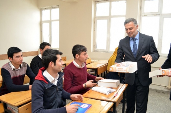 Başkan Yardımcısı Büküş, ilk olarak test kitaplarını Alaca Anadolu İmam Hatip Lisesi’nde dağıttı. Ardından Şehit Nedim Tuğaltay Lisesi’ne geçen Yusuf Büküş, son olarak Kız İmam Hatip Lisesi’nde öğrencilere test kitaplarını hediye etti.