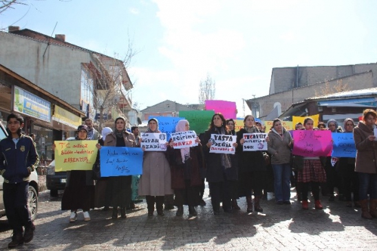 Malazgirt Caddesi’nde bir araya gelen HDP ve DBP’li kadınlarla sivil toplum kuruluşlarının üyeleri, Mersin’in Tarsus ilçesinde vahşice katledilen üniversite öğrencisi Özgecan Aslan (20) için eylem yaptılar. Bulanık Belediye Başkanı Figen Yaşar’ın da katıldığı basın açıklamasına erkekler de destek verdi. Açıklamalarda bulunan DBP Bulanık İlçe Başkanı Zeynep Topçu; kadın cinayetleri, istismarı, taciz, tecavüz ve şiddetin giderek arttığını belirterek, Özgecan cinayetinin kadınları derinden etkilediğini söyledi. Eril zihniyetin bu insanlık dışı uygulamaların son bulması için çabalaması gerektiğinin altını çizen Topçu, “Kadınlar sokaklara çıkarak erkek şiddetine ‘yeter’ demesi gerekir. Hep beraber erkek terörünü durdurabiliriz. Bugüne kadar sürekli kadın ne yapmışsa gerektiğini tarif edenler artık susmalıdır. Toplumun ahlaka, politik temelde özgürleşmesi ve demokratikleşmesinin yolu kadın özgürlüğünden geçiyor” dedi.
