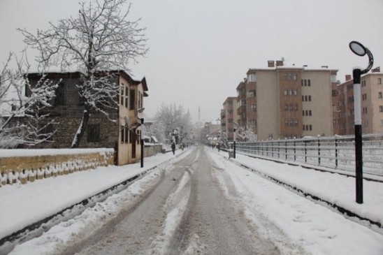 Kastamonu’nun Cide ilçesinde etkili olan kar yağışı ilçeyi beyaza bürüdü.