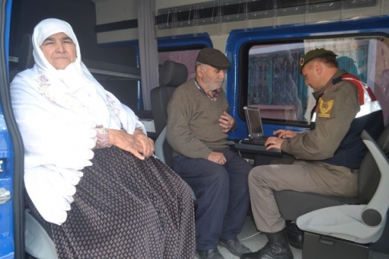 Konya’da, jandarmanın mobil karakolu engelli ve yaşlıların ayağına kadar giderek hizmet veriyor.