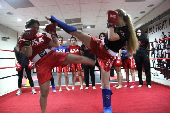 Yakın savunma ve kickboks branşlarında eğitim verilen AKA Spor Kulübü Antrenörü Ahmet Karakaş, kurslara genellikle 18-50 yaşlarındaki kadınların rağbet ettiğini söyledi. Kadınların, erkeklere göre kendilerini biraz daha zayıf hissettiğini belirten Karakaş, "Yaşanan şiddet olayları karşısında bayanlar kendilerini korumak ve savunmak istiyorlar. Burada verdiğimiz eğitimlerde yakın savunma ağırlıklı kickboks dersleri, kadınların kendilerini günlük hayatta karşılaşabilecekleri olumsuzluklara karşı savunmada yeterli oluyor" dedi.