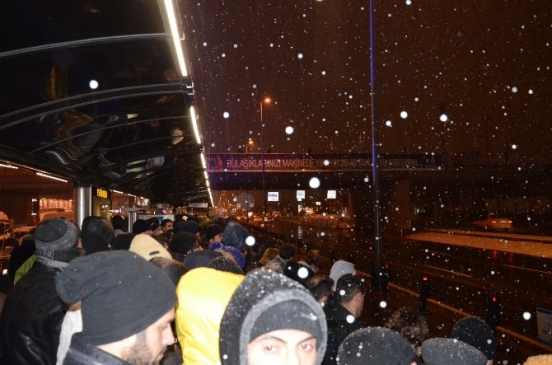 Akşam saatlerinden işten çıkıp toplu taşıma araçlarından metrobüse binmek isteyen vatandaşlar önce kar ardından metrobüs sürpriziyle karşılaştı. Etkisini arttırarak sürdüren kar nedeniyle yollar buz pistine dönünce seferlerde de aksamalar başladı. Kar nedeniyle otobüsler ilerlemekte güçlük çekince bu kez de seferler tamamen durdu. Uzun süre metrobüslerde beklemekten sıkılan İstanbullular çareyi yürümekte buldu.