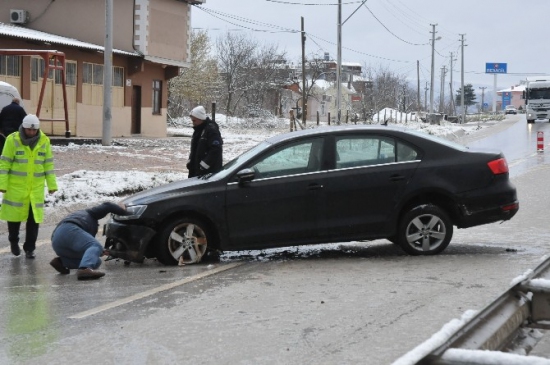 Edinilen Bilgiye göre, Düzce’de Akçakoca istikametine gitmekte olan Z.İ yönetimindeki 34 JU 5623 plakalı otomobil, yolun karlı ve kaygan olması nedeniyle yolu bölen bariyerlere çarparak durdu. Sürücü kazada yara almadan kurtulurken, polis ekipleri kazaya müdahale etti.