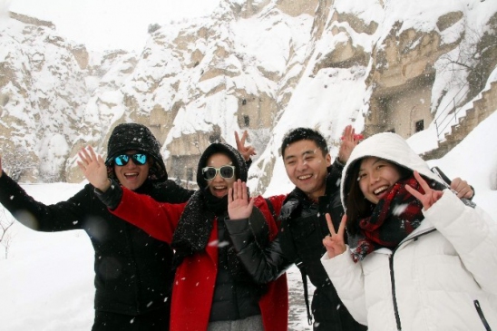 Bölgeyi gezmek için özellikle kış aylarını tercih ettiklerini belirten Çinli ve Avrupalı turistler, "Burası gerçekten harika. Kar altında peribacaları muhteşem. Kendimizi masallar diyarında hissediyoruz” diye konuştu.