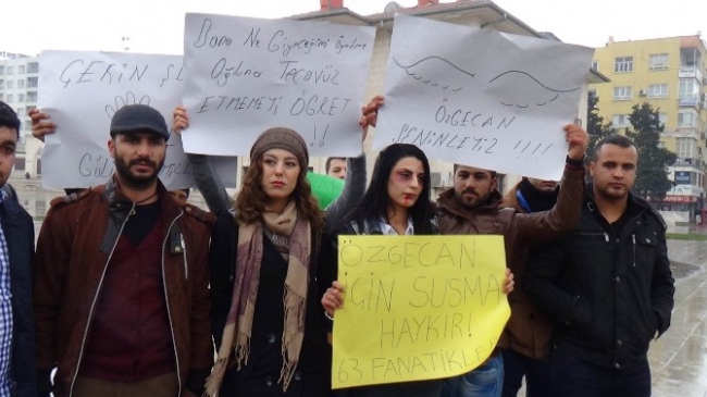Şanlıurfa’da bir grup öğrenci, Özgecan cinayetini protesto etti. Üniversite öğrencisi Gamze Bebe, yüzüne yaptığı makyaj ile şiddete tepki gösterdi.