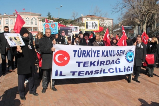 Türkiye Kamu-Sen Tekirdağ İl Temsilciliği, Mersin’in Tarsus ilçesinde öldürülen Özgecan Aslan için Tuğlalı Parkta toplanarak protesto gerçekleştirdi. Gurup adına konuşan Türk Eğitim-Sen Tekirdağ Şube Başkanı Muzaffer Doğan, "Keşke bugün güzel haberler için toplansaydık, keşke kadınlarımızın başarılarını anlatmak için konuşsaydık, keşke bugün burada toplanmış olsaydık da yaşananlar olmasaydı, keşke Özgecanlar yaşasaydı da bizler bugün bu sorunları konuşmasaydık. Kadınlarımız eğitimden yoksun bırakılarak eve mahkum edilmekte, ekonomik faaliyetleri geleneksel bir çok engelle kısıtlanmakta, çalışma hayatında bir takım haksızlık ve ayrımcılıkla karşılaşmaktadır. Kadına yönelik şiddet bildik hüzünlü öykülerle devam etmekte, geleneksel ön kabuller toplumun ve devletin duyarsızlığı ile hızlı bir şekilde büyümektedir. Bu şiddet yalnızca bedenlere zarar vermiyor. Kadınların öz saygısını, hak arama mücadelesini, ihlale direnme arzusunu zayıflatıyor veya yok ediyor" diye konuştu.