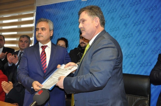 Yapılan konuşmaların ardından Uysal milletvekili aday adaylığı dosyasını AK Parti İl Başkanı Timurçin Saylar’a verdi.