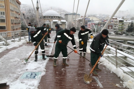 Büyükşehir Belediyesi kar yağışı nedeniyle oluşabilecek olumsuzluklara karşı tüm önlemleri aldı. Park ve Bahçeler Şube Müdürlüğü personeli tarafından sabah saatlerinde D-100 Karayolu üzerindeki 3 yaya köprüsünde ve kaldırımlarda biriken karlar temizlenerek açıdı. Buz kırma ve temizleme aletleri ile tüm köprülerin çevresi ve yaya geçişleri temizlendi. Yürüyen merdivenler de buzlanmaya karşı solüsyonlarla temizlendi.