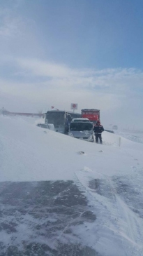 Emirdağ’ın Gömü Beldesi mevkiinden itibaren tipi ve sürgün nedeni ile kapanan karayolunda uzunluğu kilometrelere varan araç kuyrukları oluşurken, çalışmalardan dolayı polis TIR’ların geçişine izin vermedi. Görüş mesafesi düştüğü için çok sayıda maddi hasarlı kazanında meydana geldiği karayolunda, sürücüler saatlerce araçlarında mahsur kaldı.