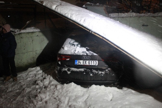 Otomobili çatının altında kalan Kerem Yaman, “Uyuyorduk büyük bir gürültü geldi. Komşularımız ilk olarak deprem zannetti. Sesin geldiği yer zaten arka taraftaydı. Daha sonra araçlarına yanına indik. Araçları yağmurdan ve çamurdan koruyan sundurma vardı. Kardan dolayı araçların önünde duran duvarın üzerinde kar birikince öne doğru gelmiş. Duvarda kurtulunca araçların üzerine düşmüş. Maddi hasar var, herhangi bir can kaybı yok” dedi.