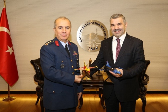Başkan Çelik’in bugünkü ilk ziyaretçileri İl Emniyet Müdürü İbrahim Kulular ve İl Jandarma Alay Komutanı Albay Halil Uysal oldu. Başkan Çelik’i ziyaret ederek tebriklerini ileten konuklar, çalışmalarında başarılar diledi. Başkan Çelik daha sonra Garnizon Komutanı Tümgeneral Ali Demiral, Jandarma Bölge Komutanı Tuğgeneral Namık Boran ve Komando Tugay Komutanı Tuğgeneral Aydoğan Aydın’ı ağırladı. Komutanlar Başkan Çelik’i tebrik ederek başarılar dilerken Garnizon Komutanı Tümg. Demiral, Başkan Çelik’e Kayserispor ve Erciyesspor’un renklerine boyanmış iki savaş uçağı maketi hediye etti.