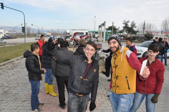 Tescilsiz olduğu tespit edilen motosiklet ve sürücülere cezai işlem uygulanırken, trafikten men edilen motosikletlerin çekiciye yükseldiği sırada motosiklet sahibi gençler selfie çekmekle meşgul oldu.