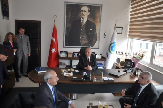 Tekirdağ merkez ilçe Süleymanpaşa Belediyesi’nin kurduğu Aş Evi’nin açılışına katılan CHP Genel Başkanı Kılıçdaroğlu, açılışın ardından Tekirdağ Büyükşehir Belediye Başkanlığı’nı ziyaret etti. Tekirdağ Büyükşehir Belediye Başkanı Kadir Albayrak ile makamında görüşen Kılıçdaroğlu, ziyaret sonrası Büyükşehir Belediyesi Meclis Salonu’nda CHP Tekirdağ ilçe başkanları ile görüştü.