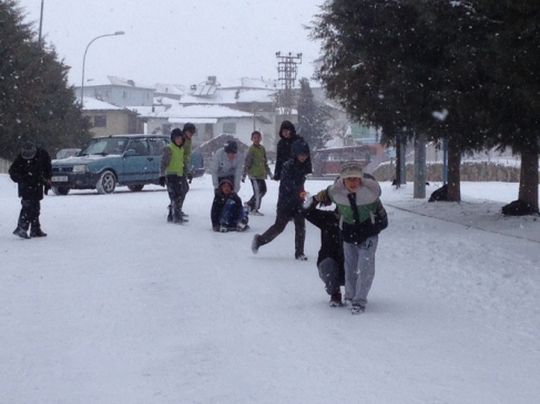 Son kar yağışı ile birlikte bembeyaz örtüye bürünen Pazarlar İlçesinde kar, çocuklar için tam bir eğlence oldu.