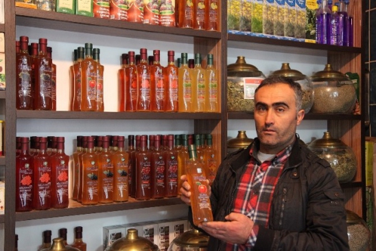 Piyasada oldukça çok bulunan bazı sirkelerin sağlık açısından da zararlı olduğuna değinen Aktar Ayazer, satışa sundukları doğal sirkeleri deneyenlerin ise tekrar kullandığını ifade etti. Tamamen organik olan sirkelerin yaklaşık bir yıl fermantasyon yöntemi kullanılarak bekletildikten sonra kullanıma hazır hale getirildiğini vurgulayan Ayazer, “Alıç, elma, enginar, nar, limon, böğürtlen, üzüm ve gilaburu olmak üzere 8 çeşit doğal sirkemiz bulunuyor. Bu sirkelerin her birinin kendine has özellikleri var. Alıç sirkesi kalp, damar, sinir sıkışması ve ritim bozukluklarında fayda sağlıyor. Elma sirkesi yağ yakıcı özelliğinin yanı sıra zayıflama ve diyet uygulamalarında da kullanılıyor. Ayrıca elma sirkesi karaciğer yağlanmasını engelliyor. Saç ve beden temizliğinde de kullanılabiliyor. Enginar sirkesi karaciğer hastalıkları ve kolesterol için fayda sağlarken mide ve bağırsak rahatsızlıklarında dezenfekte özelliği taşıyor. Antioksidan, kan temizleme ile ishal kesmede oldukça fazla önerdiğimiz nar sirkesinin tansiyon ve kolesterol düşürücü özelliği de bulunmaktadır. C vitamini özelliği bulunan limon sirkesi bağışıklık sistemi rahatsızlıkları, kan yağlarını temizleme ve enfeksiyon hastalıklarında kullanılıyor. Böğürtlen sirkesinin iltihap kurutucu özelliği bulunurken, şeker hastalıkları ve bayan hastalıklarında da kullanılıyor. Ayrıca boğaz ve bademcik ağrıları içinde böğürtlen sirkesini öneriyoruz. Üzüm sirkesi genelde turşu yapımı için kullanılıyor. Fakat ayak ağrılarında da fayda sağlayan bir özellik taşıyor. Gilaburu dediğimiz sirke ise idrar yolları enfeksiyonlarında oldukça etkili bir şifa kaynağı olurken, böbrek hastalıkları için de önerilen bir üründür. Ayrıca şifalı bitkisel ürünlerimizi www.cihanbaharatcisi.com adresinden de satışa sunuyoruz. İlçemizin yanı sıra çevre il ve ilçelerden de ürünlerimizi talep edenler oluyor” dedi.