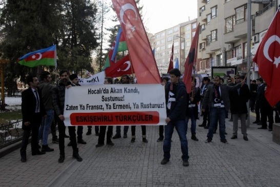 Hamamyolu Yediler Parkı’nda toplanan yaklaşık 400 kişilik grup, Hocalı katliamını ve Fırat Yılmaz Çakıroğlu’nun öldürülmesini protesto etti. Eskişehir Türkçüler Derneği üyeleri ve ülkücü grup, ellerindeki afiş ve dövizlerle ‘Hepimiz Türküz, hepimiz Fırat’ız’, ‘Şehitler ölmez vatan bölünmez’, ‘Karabağ Türk’dür, Türk kalacak’ şeklinde sloganlar atarak, Porsuk Bulvarı Adalar mevkine kadar yürüdü. Burada grup adına basın açıklaması yapan Ali Rıza Şekeroğlu, yapmayı planladıkları yürüyüşün ‘Hocalı katliamını protesto ve Ermeni terörüne lanet yürüyüşü’ olduğunu ancak Ege Üniversitesi’nde PKK’lılar tarafından şehit edilen Fırat Yılmaz Çakıroğlu için de burada olduklarını söyledi. Şekeroğlu, “Tarihin her sayfasında adını efendisi Türk’e ihanetle yazdıran PKK, 20 Şubat’ta buna bir yenisini eklemiştir. Ancak ne acıdır ki üniversiteleri ve sokakları kendilerine yuva yapmaya çalışan bu PKK hainlerinin karşısına Türkçü, ülkücü gençlerden başka kimse çıkmamaktadır. Mevcut iktidar ise bunları açılım safsataları ile daha da cesaretlendirmektir. Şahit olsun gök tengri bu kalabalık ölmekten ve öldürmekten korkmayan kalabalıktır. Tüm bu ihanetlerin hesabı sorulacaktır. Unutmayın bu topraklar hainleri hiç sevmez. Bugün sabredenler, bir gün bezeceklerdir” ifadelerini kullandı.