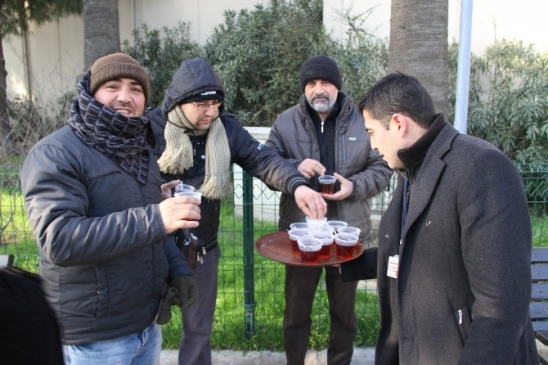 Gaziemir Belediyesi, kentte etkili olan ve hayatı olumsuz etkileyen soğuk havalarda okula giden öğrencilere, işe giden vatandaşlara, dolmuş ve otobüs duraklarında çay ikram etti.