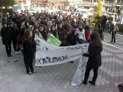 Kütahya’nın Gediz ilçesinde, Türkiye’yi sarsan üniversite öğrencisi Özgecan Aslan katliamı öğrenciler ve ilçe halkı tarafından protesto edildi.